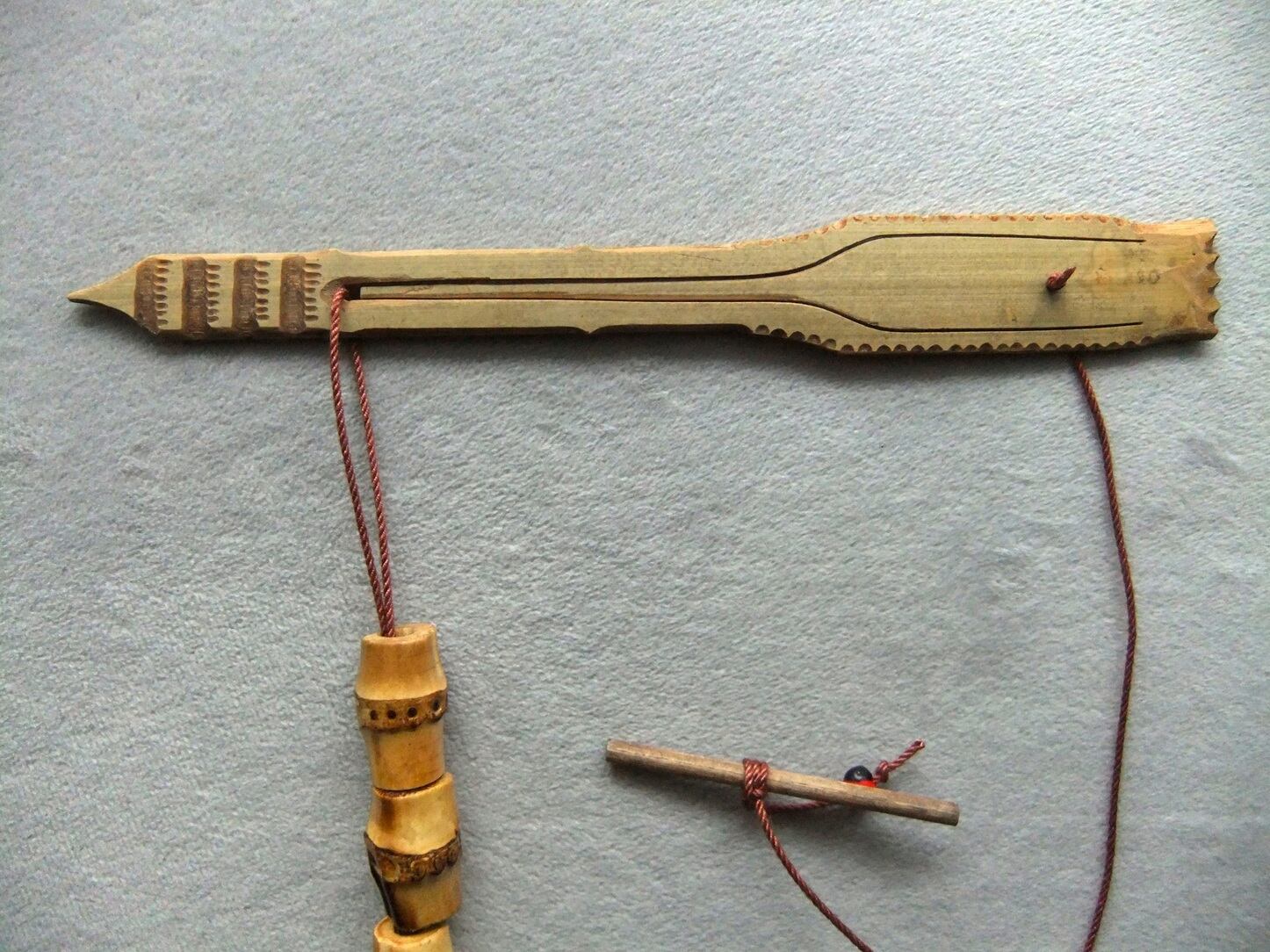 ・ムックリは、紐を引いて「弁」を振動させながら演奏しますが、慣れない方はチカラを入れすぎて壊してしまうことがあります。初めての方は特にご注意ください。