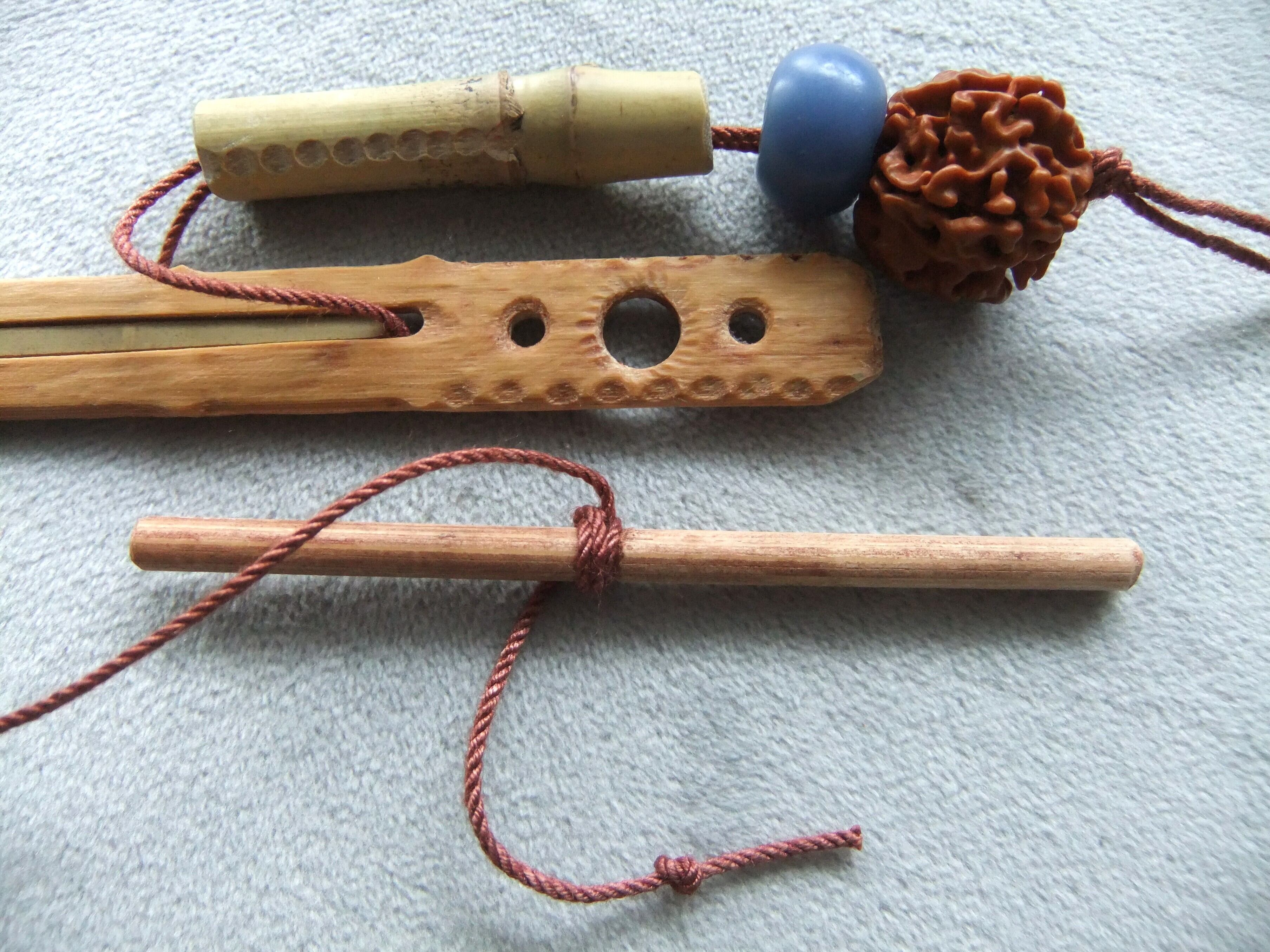 ※持ち手の部分は、紐に指をとおさず、竹筒と本体を同時に握って演奏するように仕上げています