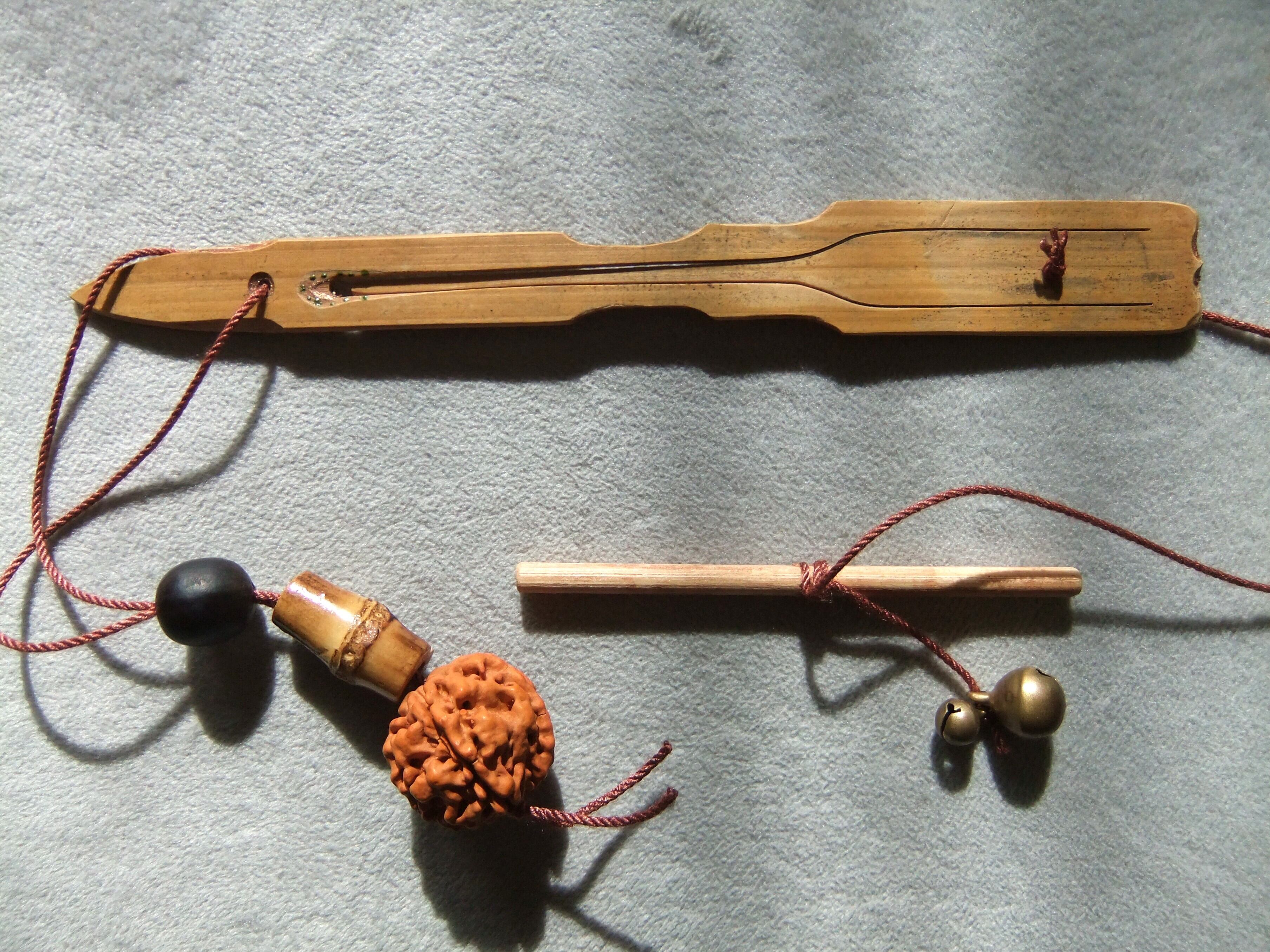 ・スズ(鈴)を二個つけたため演奏のたびに小さく鳴ります