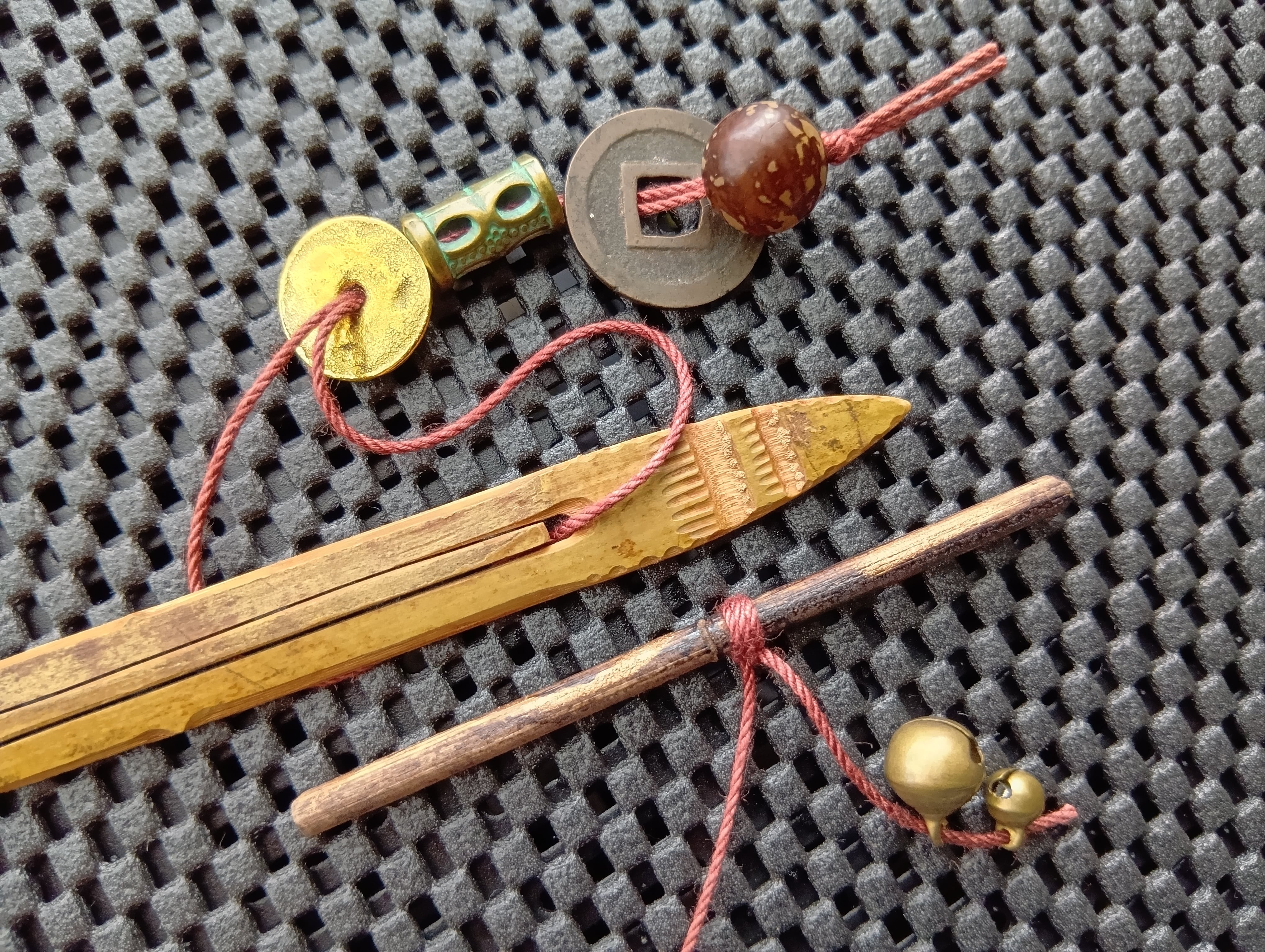 ・飾りをつけています。本物の江戸時代の古銭「寛永通宝」つき