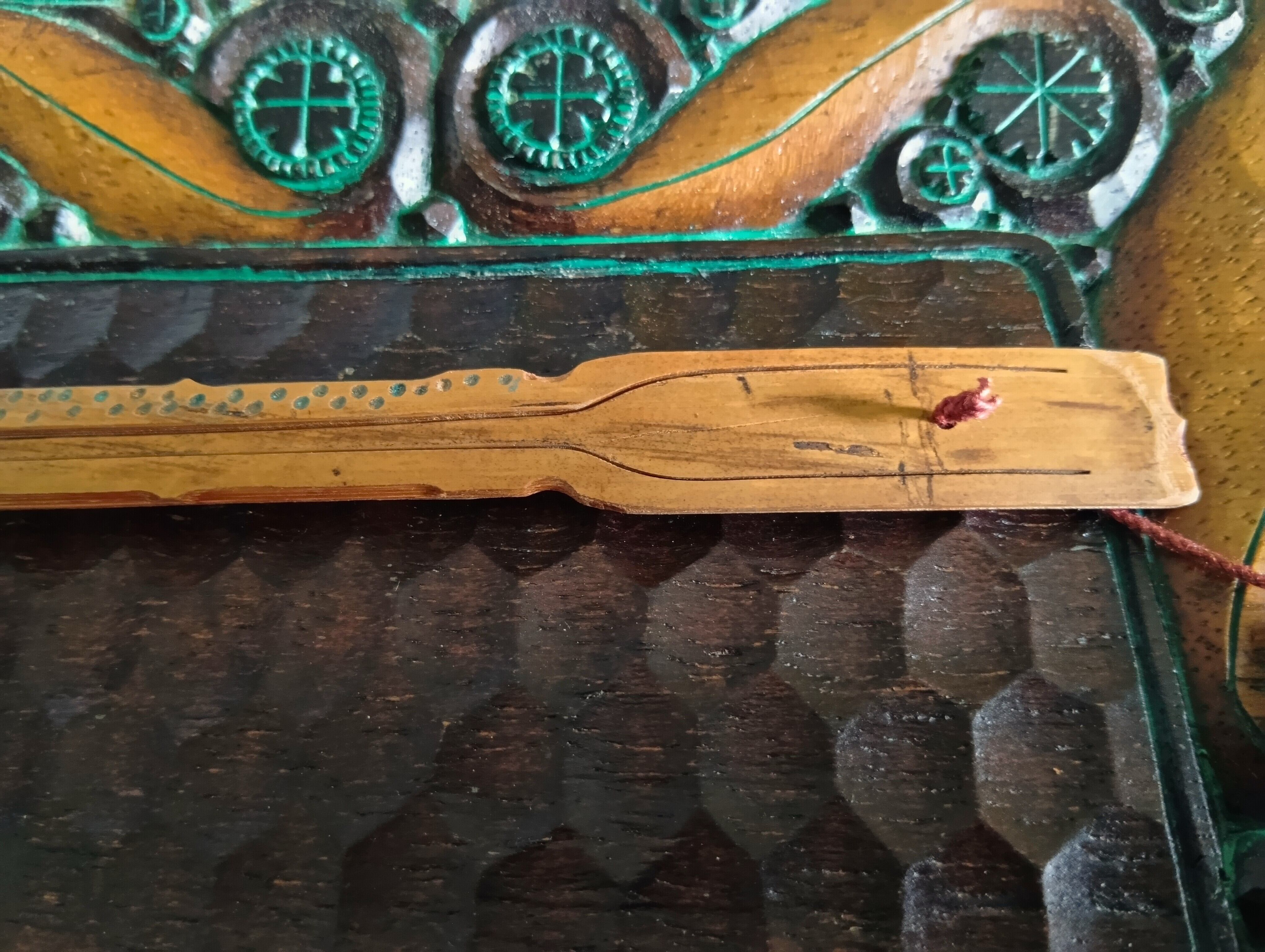 ・裏側面や表の彫刻部分、棒などは柿渋染め。