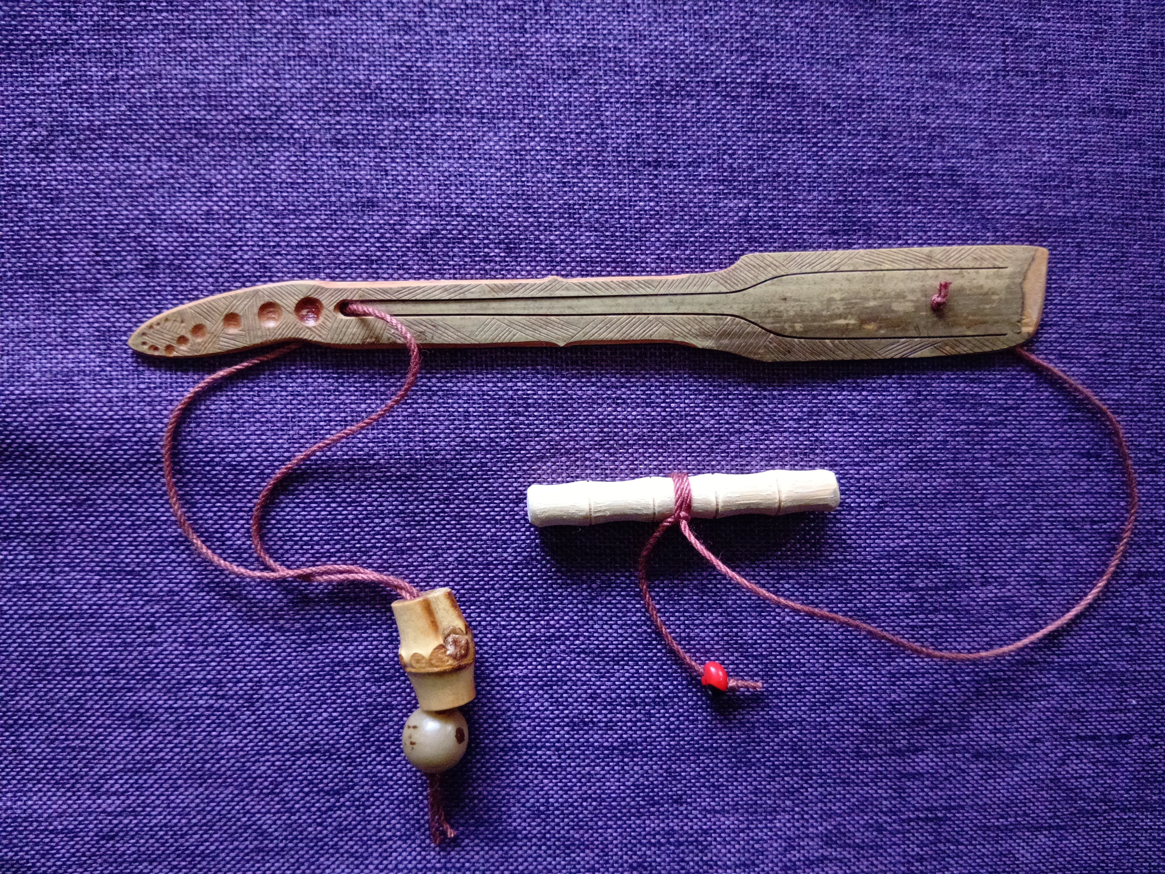 ・ムックリは、紐を引いて「弁」を振動させながら演奏しますが、慣れない方はチカラを入れすぎて壊してしまうことがあります。初めての方は特にご注意ください。