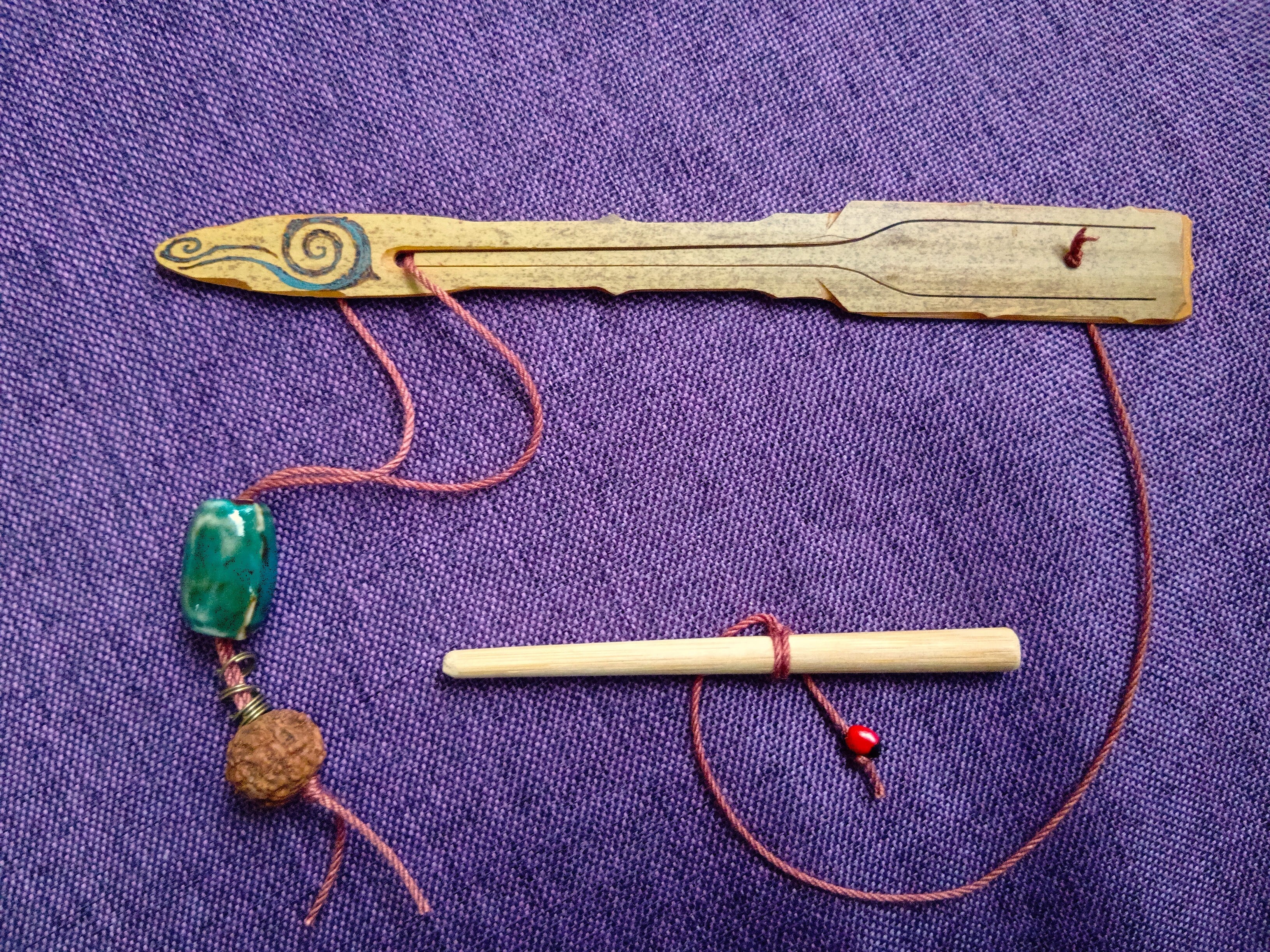ムックリ 作品 「青緑の陶器飾りがついたムックリ」