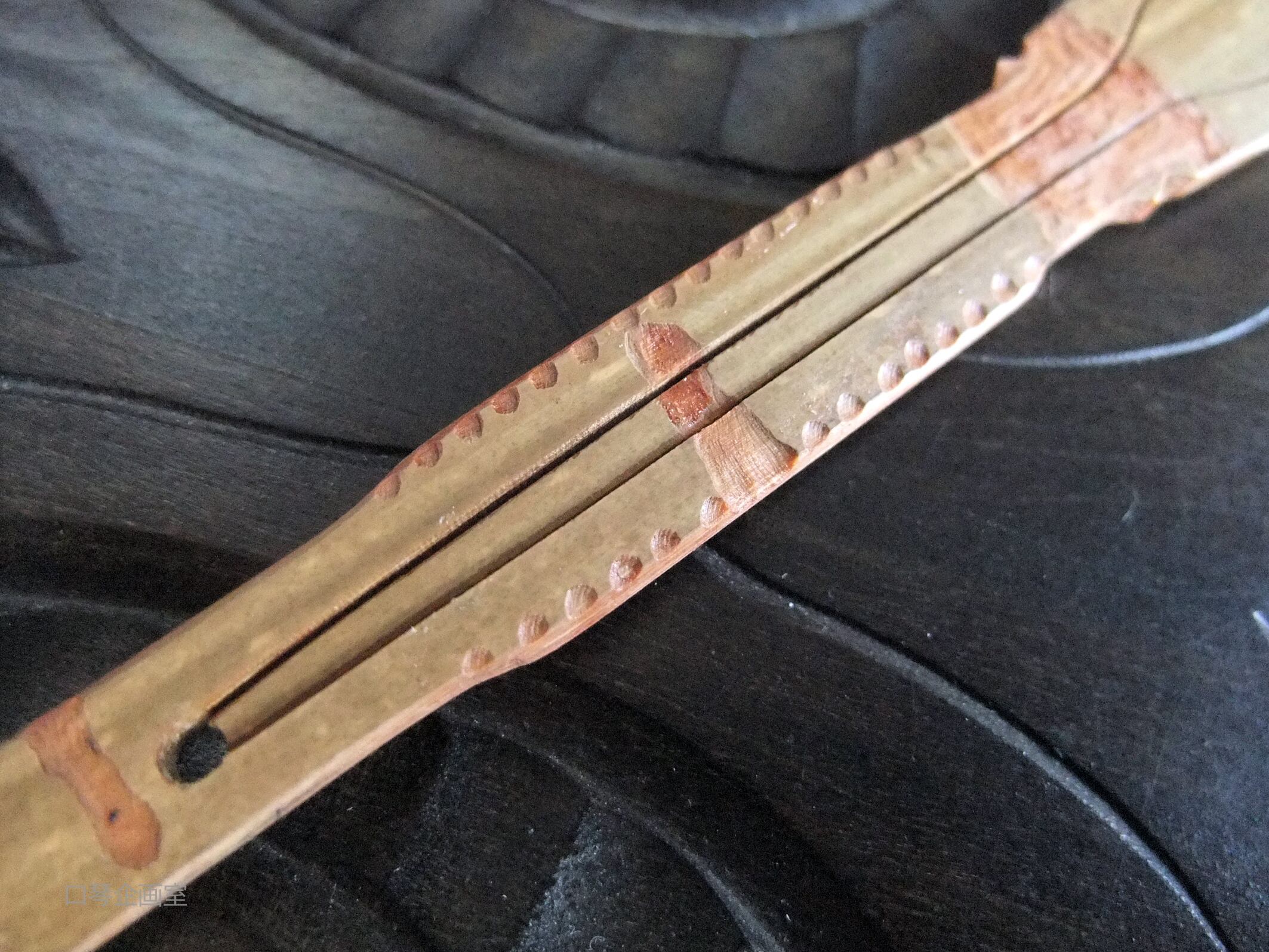 ・ムックリは、紐を引いて「弁」を振動させながら演奏しますが、慣れない方はチカラを入れすぎて壊してしまうことがあります。初めての方は特にご注意ください。