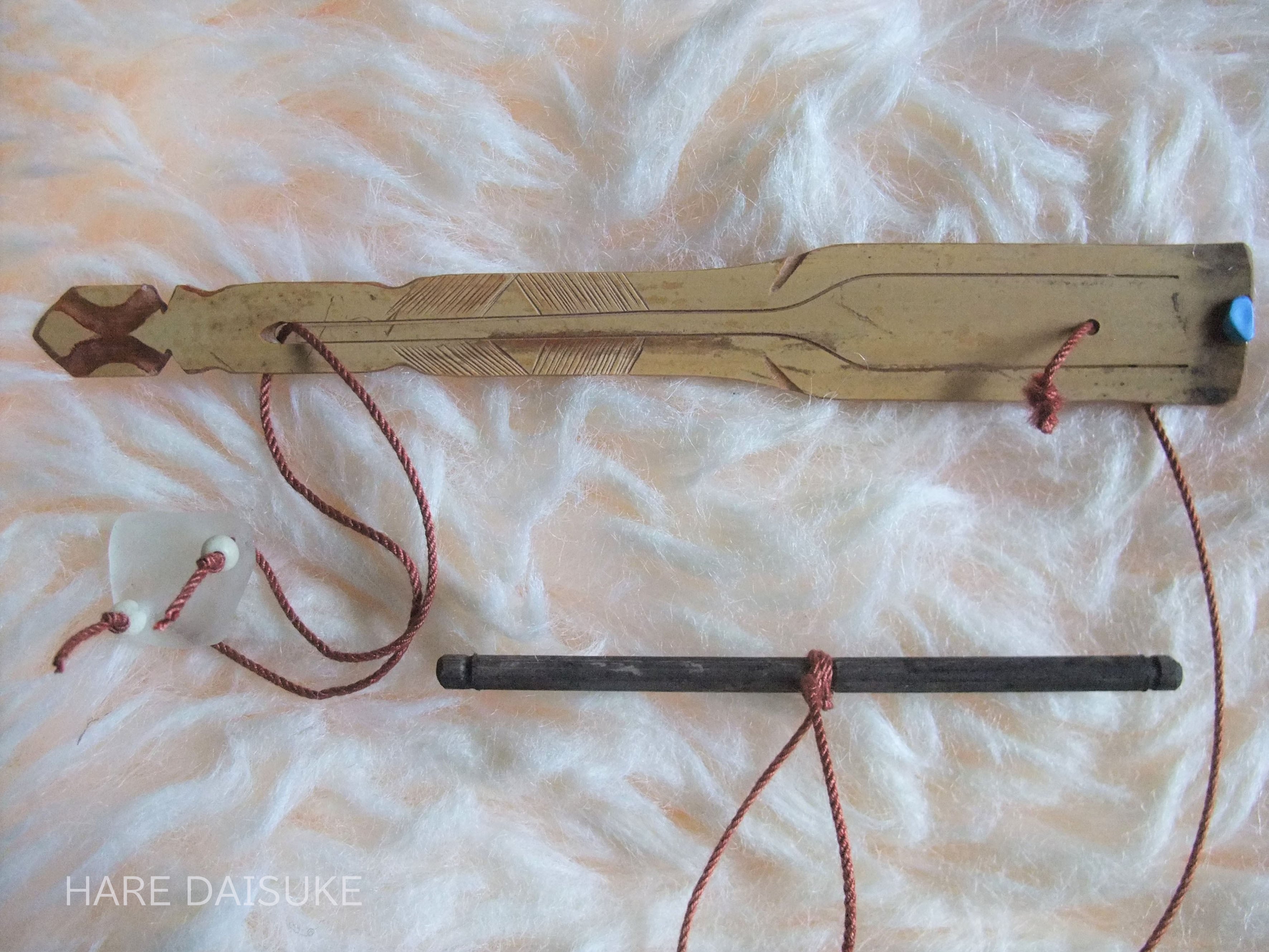 ・ムックリは、紐を引いて「弁」を振動させながら演奏しますが、慣れない方はチカラを入れすぎて壊してしまうことがあります。初めての方は特にご注意ください。