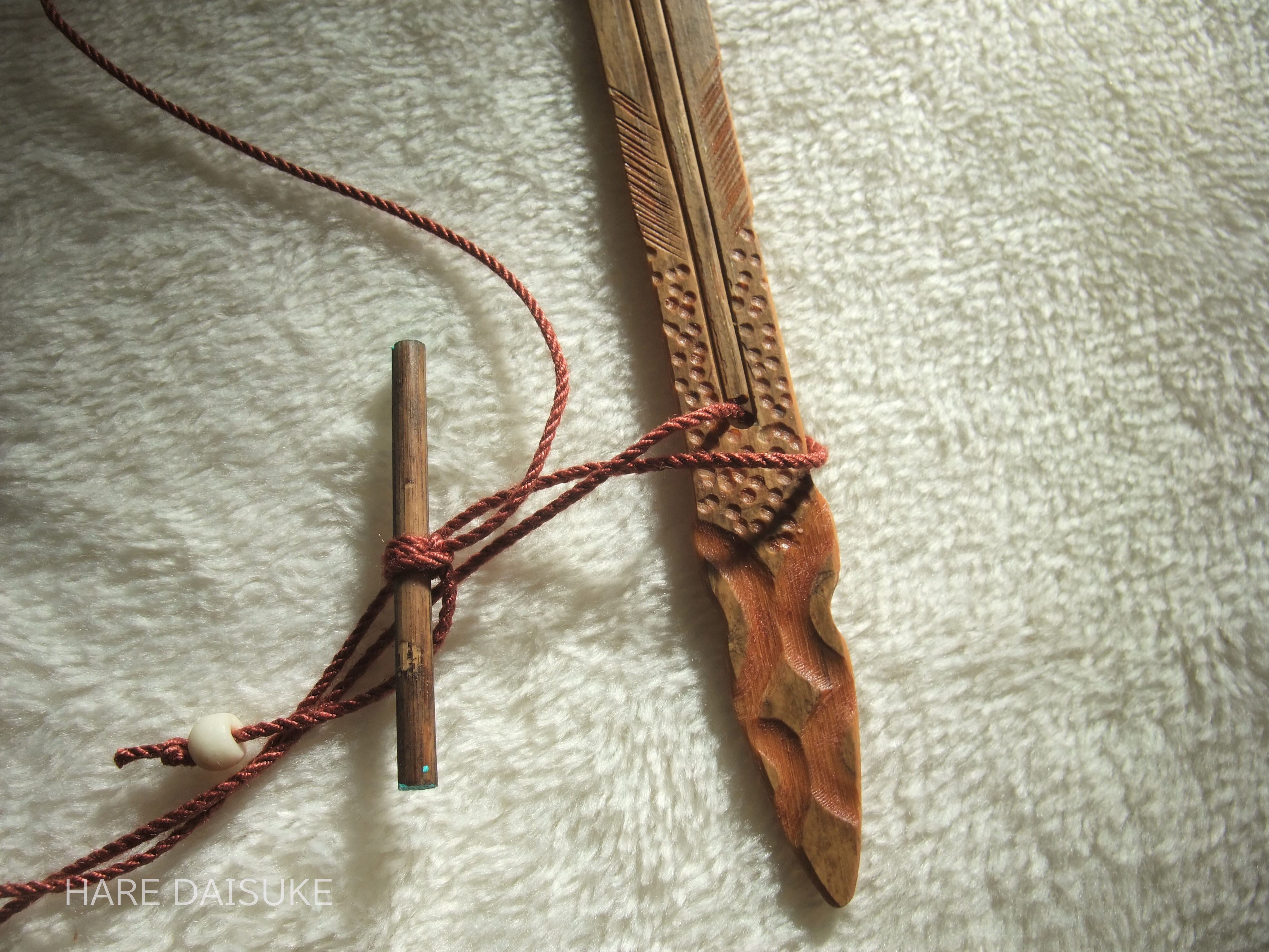 ・ムックリは、紐を引いて「弁」を振動させながら演奏しますが、慣れない方はチカラを入れすぎて壊してしまうことがあります。初めての方は特にご注意ください。