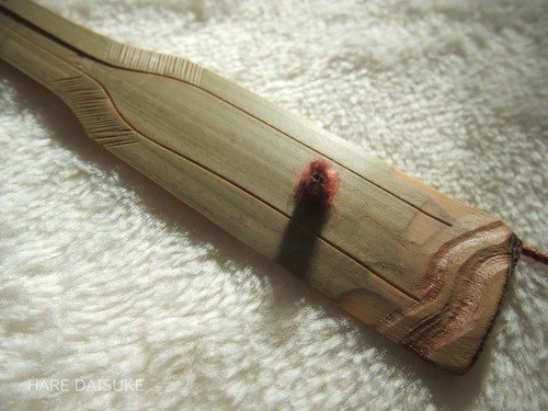 ・裏面及び棒、表面の彫刻部分は天然の柿渋で二度染めています。