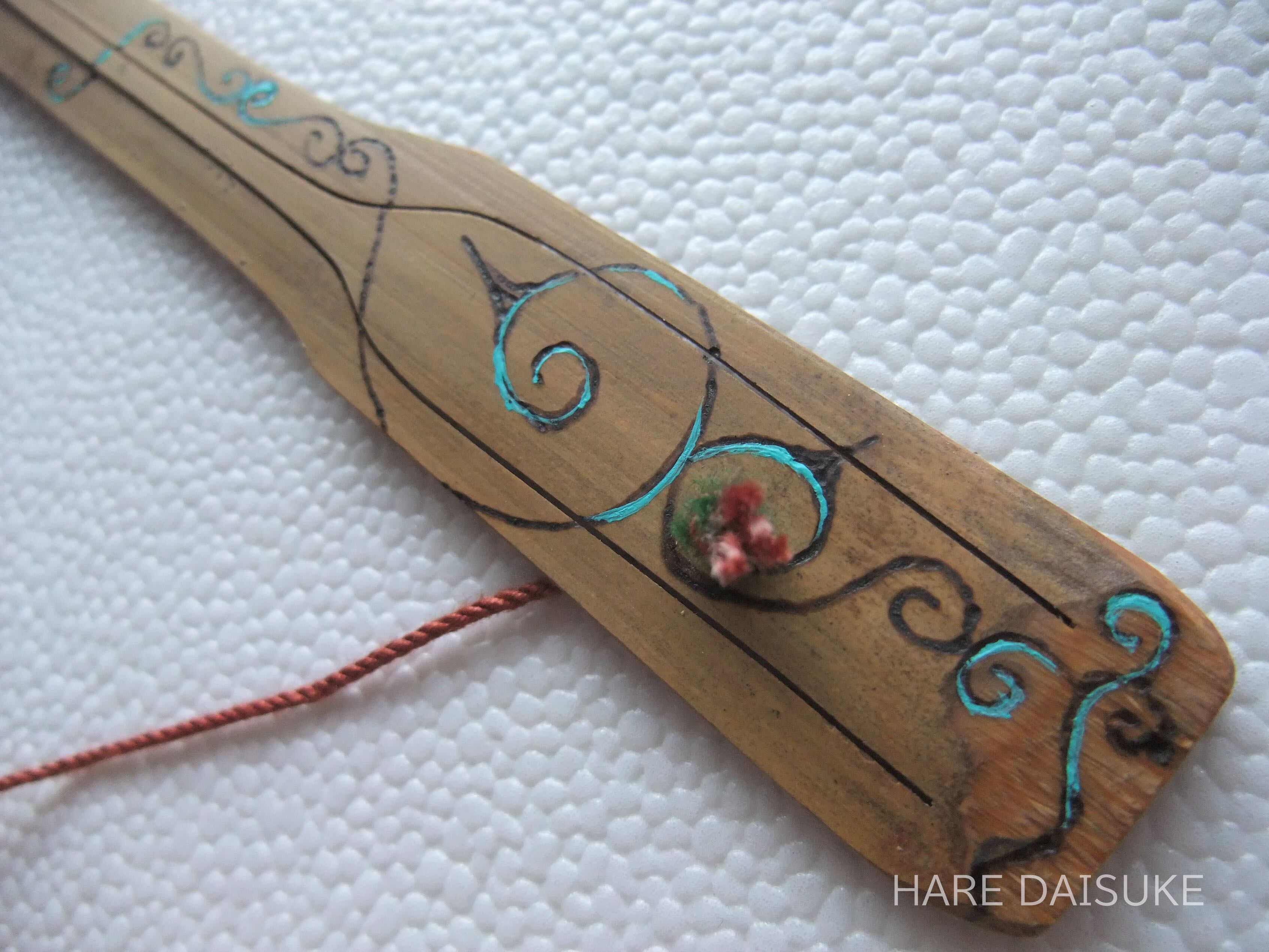 ・裏面及び棒、表面の彫刻部分は天然の柿渋で二度染めています。