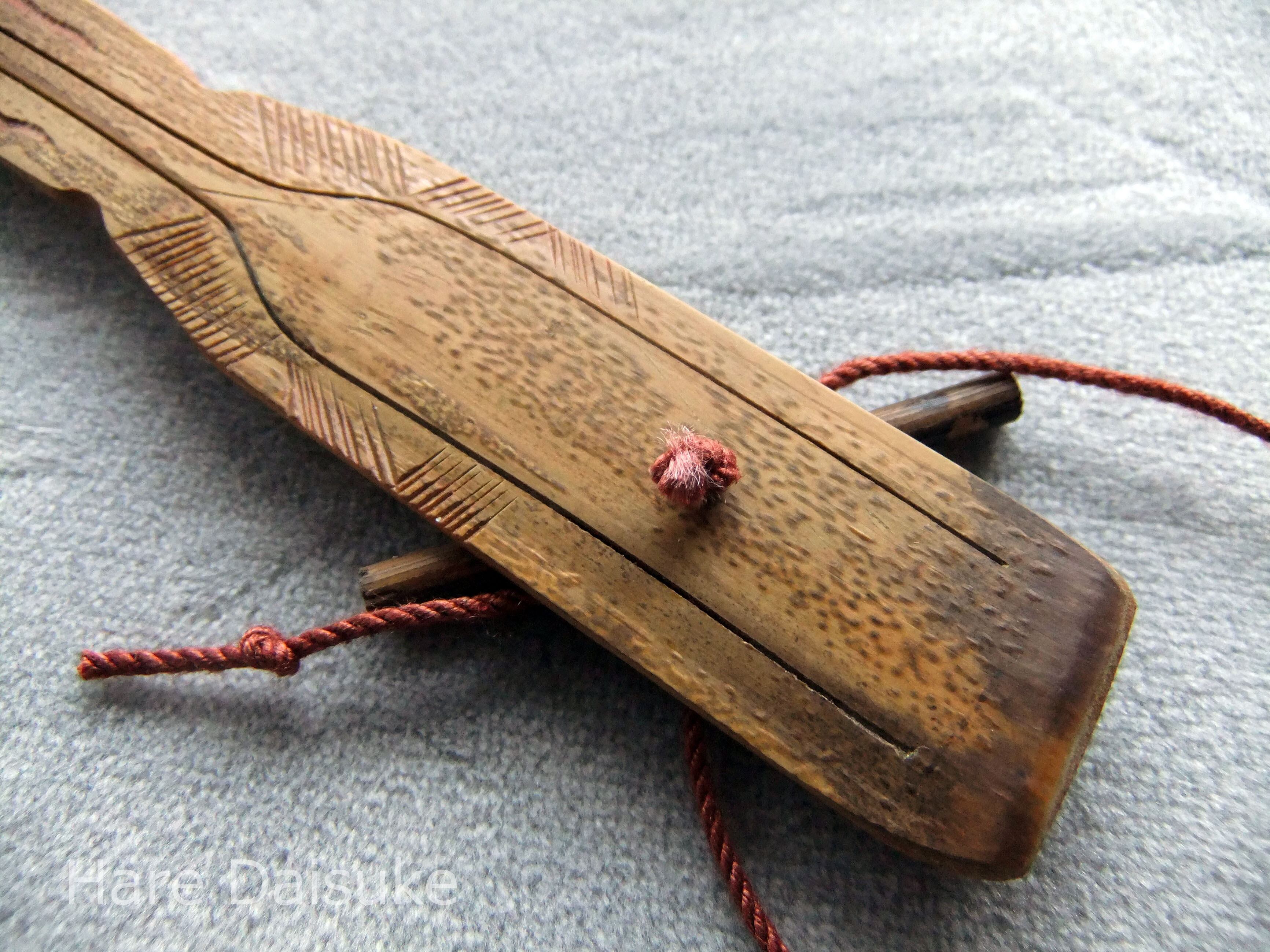 ・ムックリは、紐を引いて「弁」を振動させながら演奏しますが、慣れない方はチカラを入れすぎて壊してしまうことがあります。初めての方は特にご注意ください。