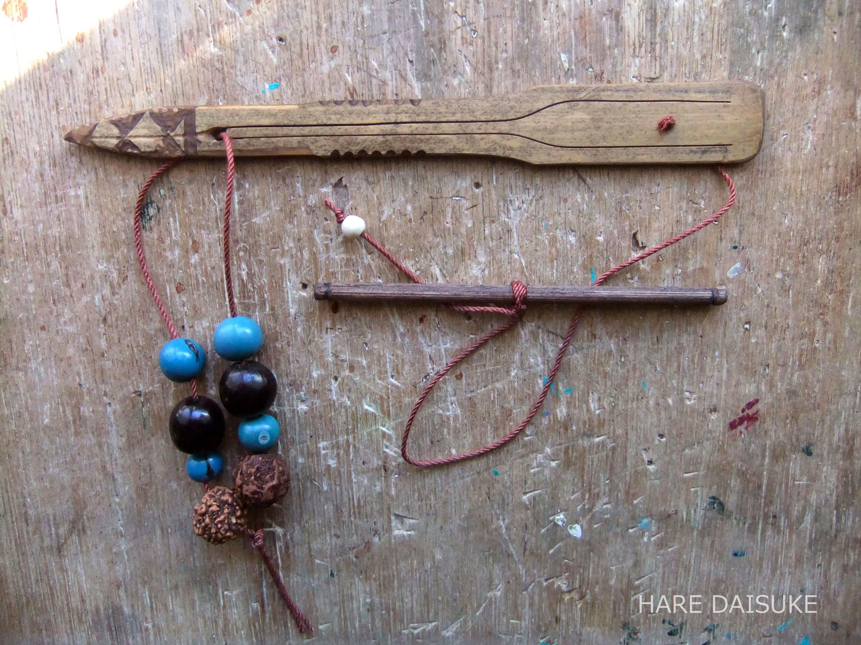 ・裏側面や表の彫刻部分、棒などは柿渋染め。棒のみさらに鉄で焙煎し黒っぽくしています。