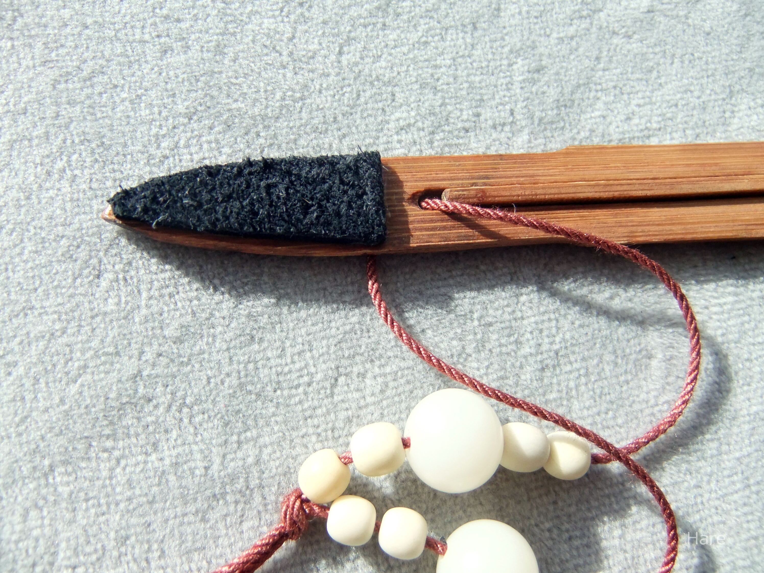 ・ラクダのホネの小さなビーズや白い天然石の飾りつけています