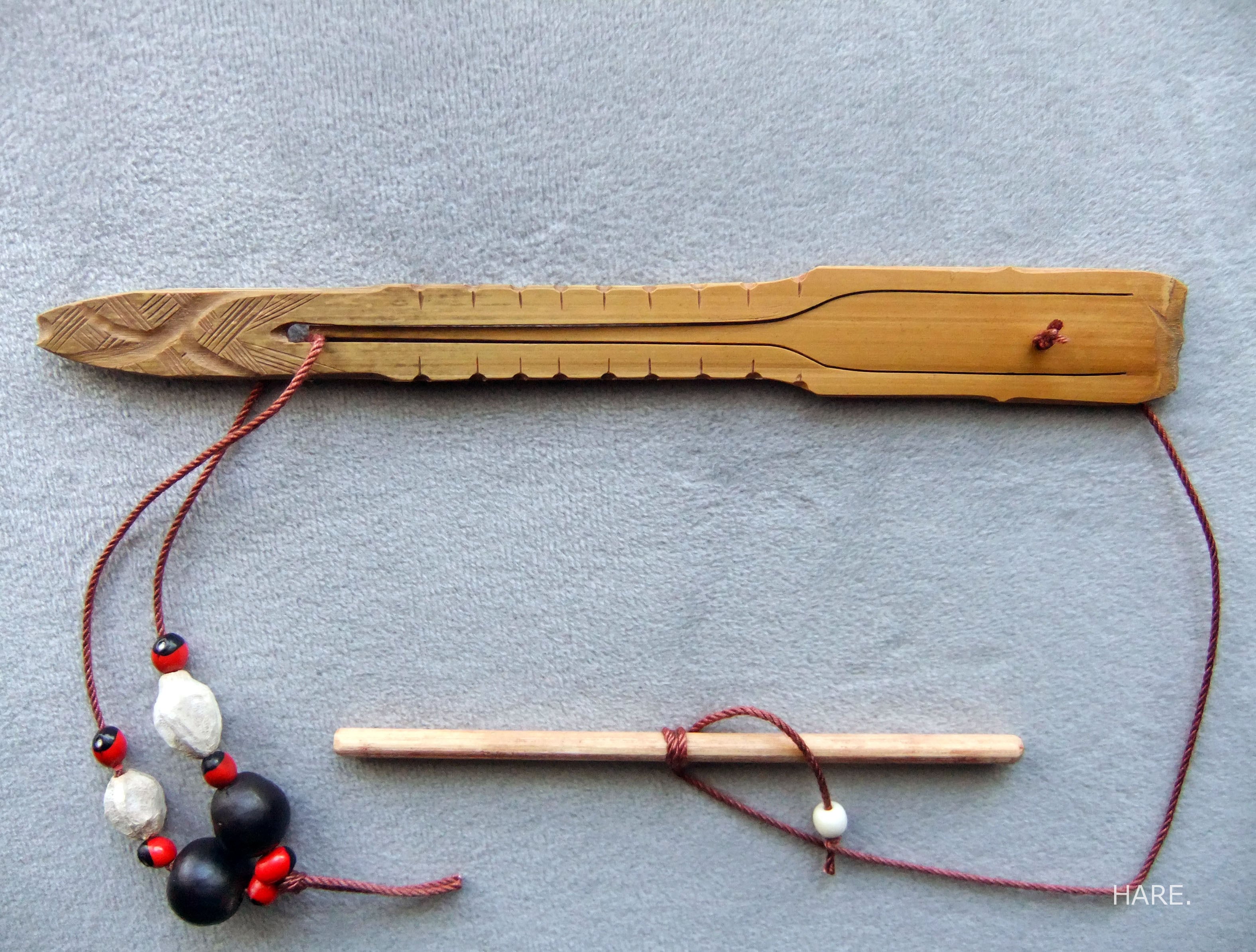 ・ムックリは、紐を引いて「弁」を振動させながら演奏しますが、慣れない方はチカラを入れすぎて壊してしまうことがあります。初めての方は特にご注意ください。