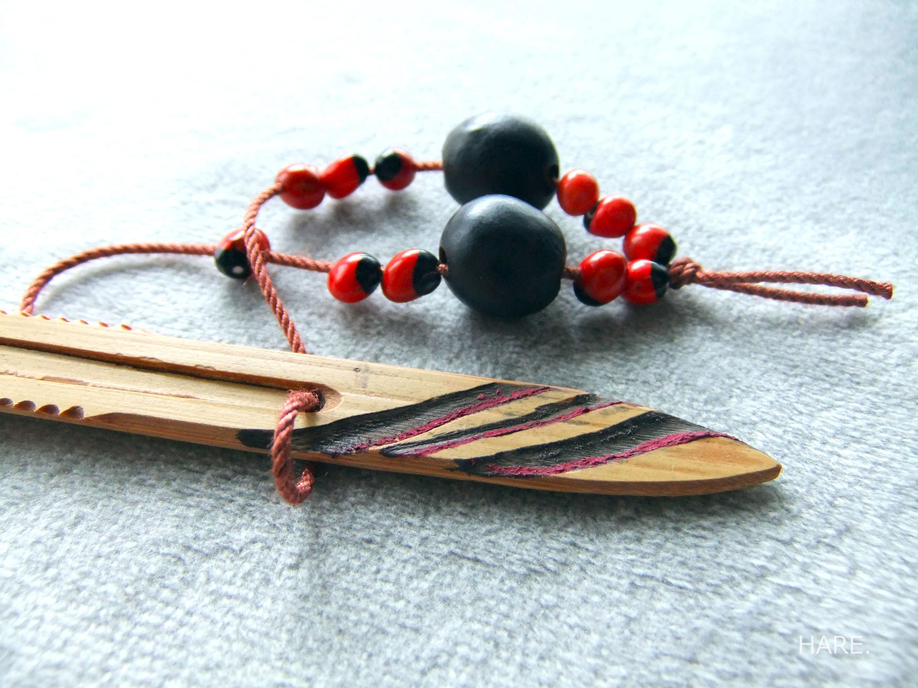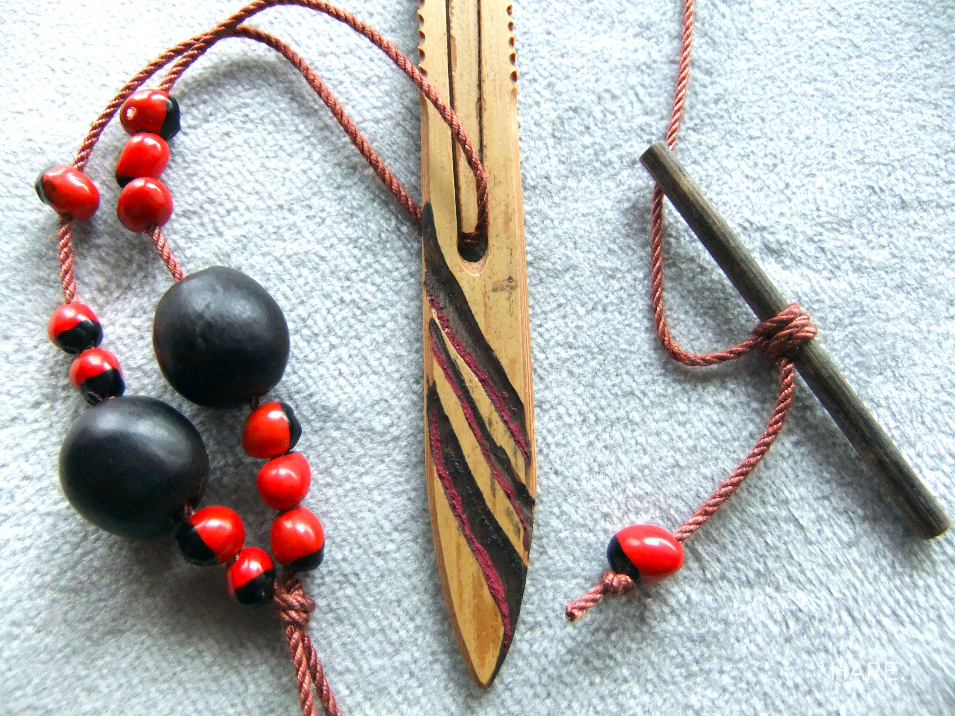 ・裏側面や表の彫刻部分、棒などは柿渋染め。
