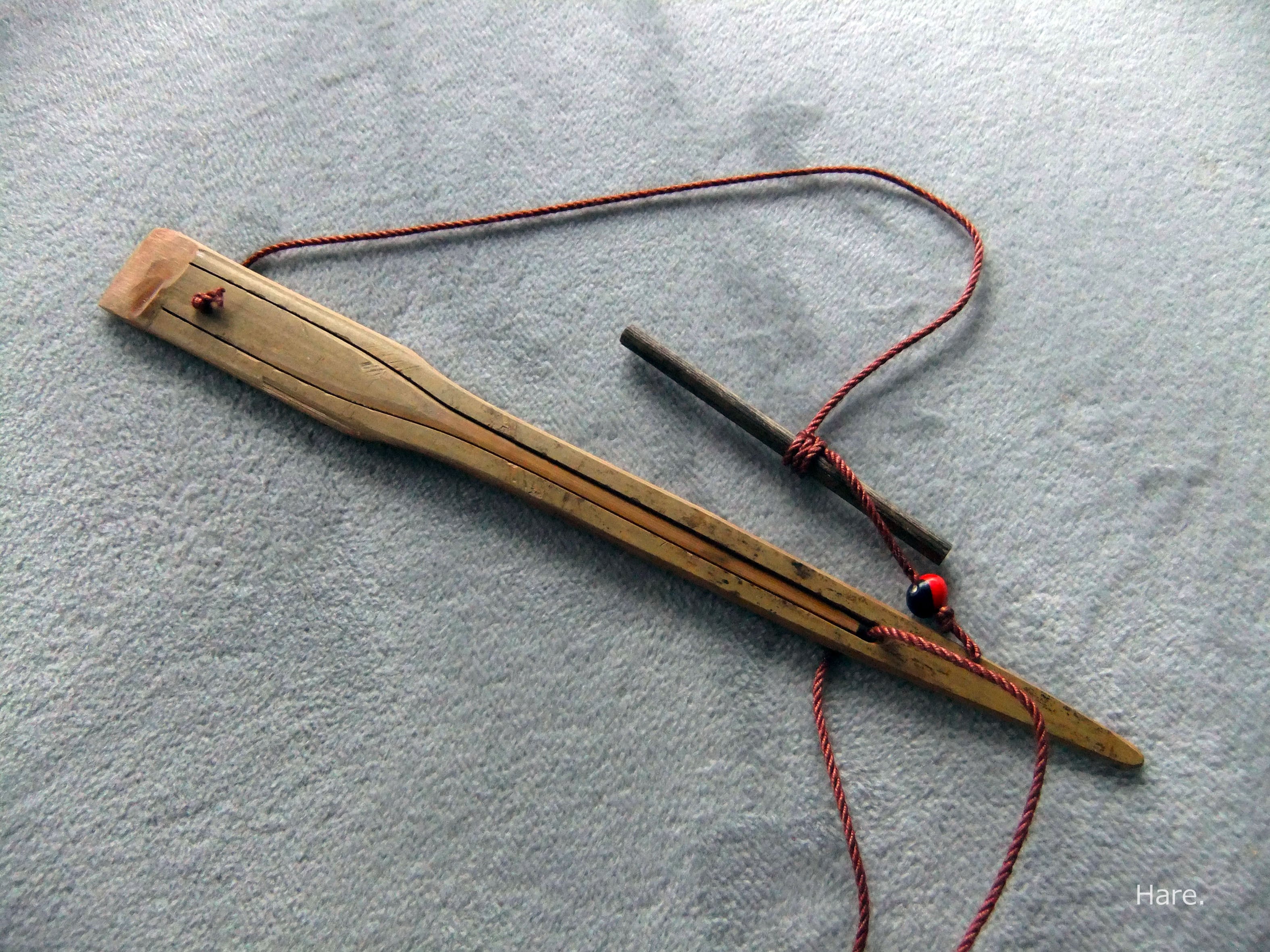 ・ムックリは、紐を引いて「弁」を振動させながら演奏しますが、慣れない方はチカラを入れすぎて壊してしまうことがあります。初めての方は特にご注意ください。
