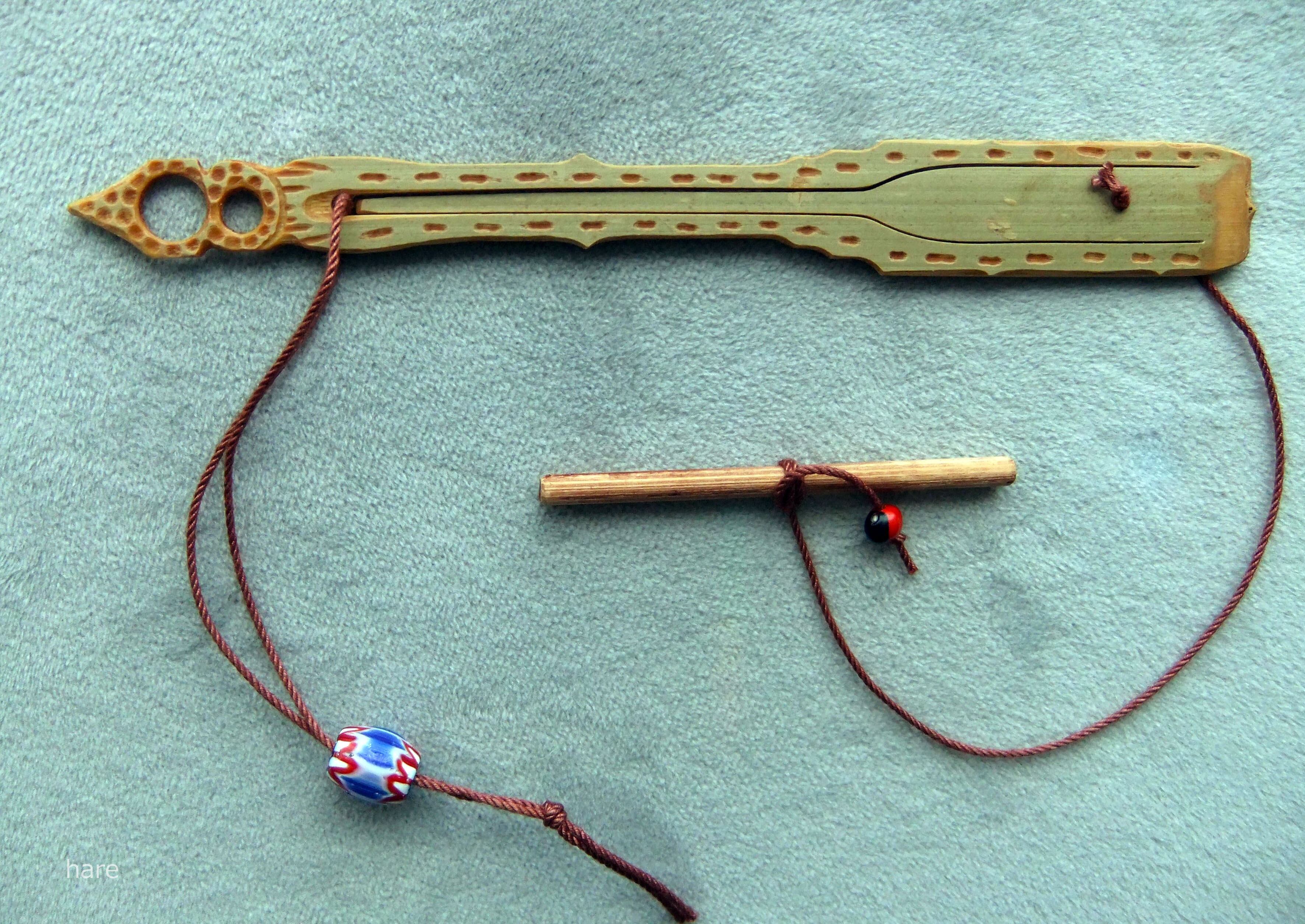 ・ムックリは、紐を引いて「弁」を振動させながら演奏しますが、慣れない方はチカラを入れすぎて壊してしまうことがあります。初めての方は特にご注意ください。